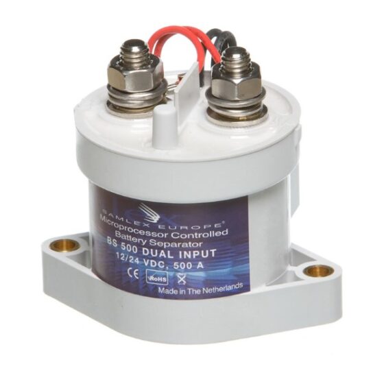 El BS 140 DUAL está diseñado para situaciones en las que se utilizan 2 baterías, como en barcos, autocaravanas y caravanas. El separador de baterías es un relé de alta capacidad controlado por microprocesador que conecta automáticamente las baterías en paralelo cuando una de ellas alcanza un voltaje preestablecido durante al menos 5 segundos (13,2V/26,4V), indicando que la batería está siendo cargada. Se desconecta cuando el voltaje disminuye por debajo del nivel mínimo durante al menos 5 segundos (12,8V/25,6V), lo que indica que una o más baterías están siendo descargadas.