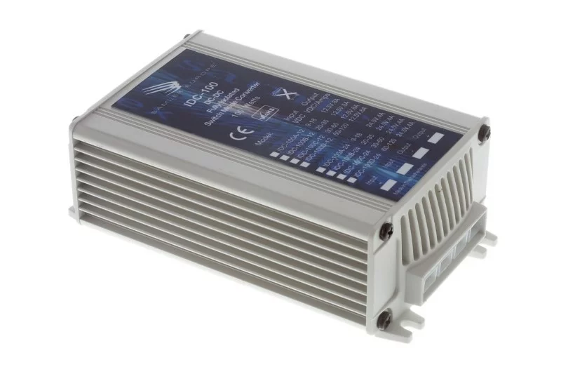 De IDC-100 serie is een complete lijn van zeer efficiënte 100 Watt geïsoleerde DC-DC converters geschikt voor toepassingen die een galvanische scheiding vereisen tussen de ingang en de uitgang. De IDC-100D-24 geïsoleerde DC-DC converter levert een sterk geregelde DC uitgangsspanning van 24,5 Volt voor een DC ingangsspanningsbereik van 60-120 Volt en een nominale uitgangsstroom van 4 Ampère (bij 120 Volt ingang). Kenmerken van deze geïsoleerde DC-DC converter zijn onder andere compacte behuizing, terugslagstroombegrenzing en bescherming tegen kortsluiting, oververhitting, overspanning en omgekeerde polariteit. De unit wordt geleverd met 6,3 mm “quick disconnect” connectoren. De IDC-100D-24 geïsoleerde DC-DC converter is EMI/EMC-conform en voldoet aan de Europese normen EN50081-1 (voor EMI) en EN50082-1 (voor EMC).